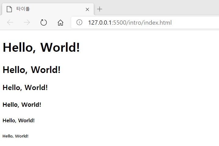 <h1>, <h2>, <h3>, <h4>, <h5>, <h6> 태그들로 구성되며, 1에서 6으로 갈수록 제목의 폰트 사이즈는 작아진다.